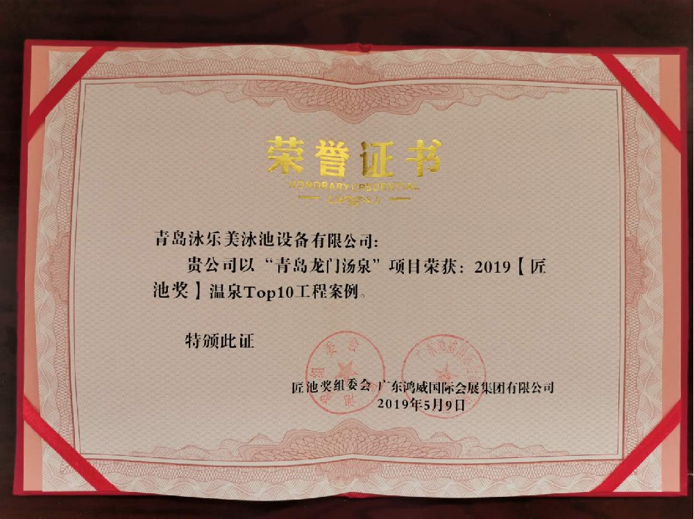 2019年5月9日,2019年亞洲泳池SPA博覽會暨【匠池獎】頒獎典禮在廣州?廣交會展館隆重舉行,青···2019【匠池獎】溫泉SPA十大工程案例獎